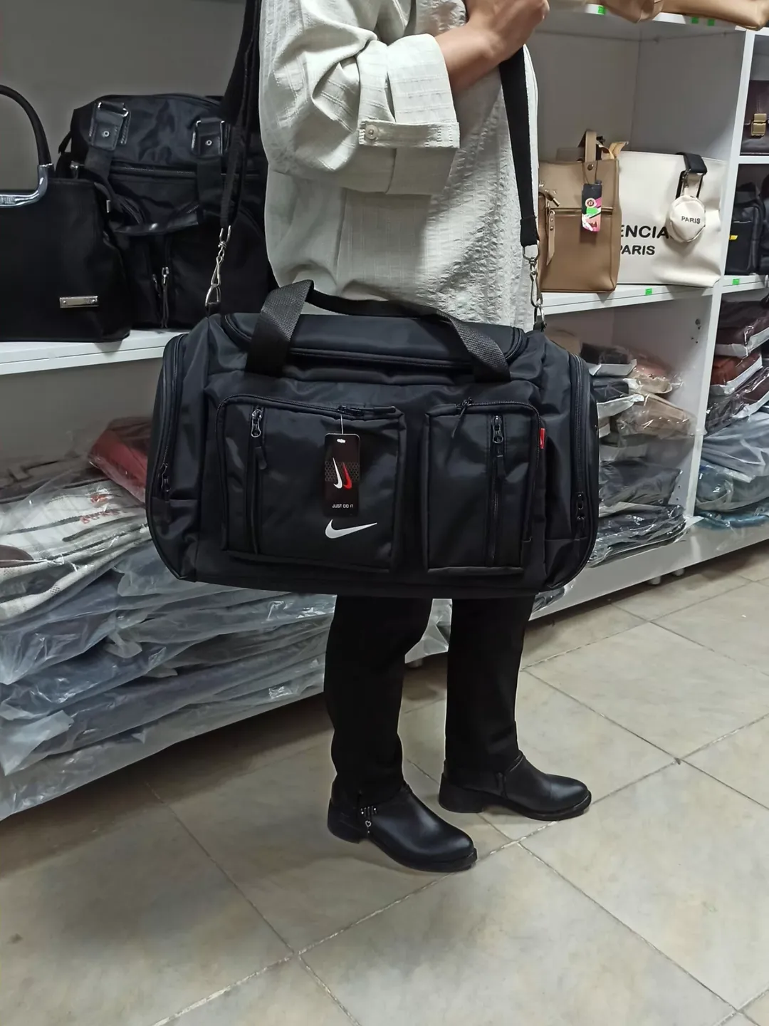 متاسفانه این کالا در حال حاضر موجود نیست. میتوانید از طریق لیست بالای صفحه، از محصولات مشابه این کالا دیدن نمایید.ساک ورزشی جاکفشی دار نایک جنس ساتن وارداتی آستردوزی عالی 7 تا زیپ داره بند بلند قابل تنظیم داره ابعاد 48*20*25.