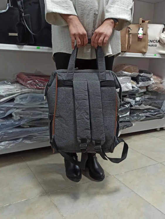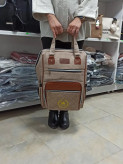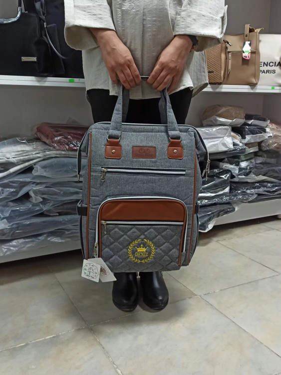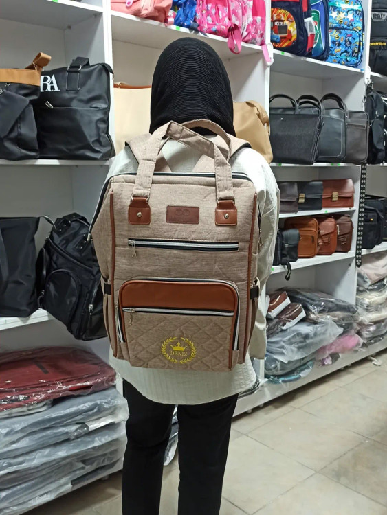 جنس پارچه ای کنفی یه قسمت داره زیر نوزاد پهن میکنن برای تعویض پوشک داخلش چهارتا جدا کننده داره که وسایل مختلف رو از هم جدا کنید جادار و با کیفیت که برای همه وسایل نوزاد جا داره از پوشک و شیرخشک تا انواع لباس دوتا جیب بغل داره که حالت کشسانی داره و کلی وسیله توش جا میشه سه تا زیپ جلوش داره ابعاد 4030.